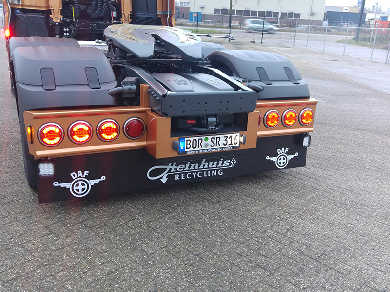 Dit voertuig zal worden ingezet bij de vestiging in het Duitse Stadtlohn om recyclebare grondstoffen te vervoeren. Deze fraai uitgevoerde trekker is uitgerust met een schuifschotel en hydrauliek. Qua comfort en uitstraling is er de nodige aandacht besteed: zo is dit voertuig onder andere voorzien van LED koplampen, een koellade, Xtra Comfort matras, Climate control, DAF Night lock, luchthoorns, lampenbeugel met verstralers, zwaailampen en een robuuste achterbumper in de herkenbare kleur.