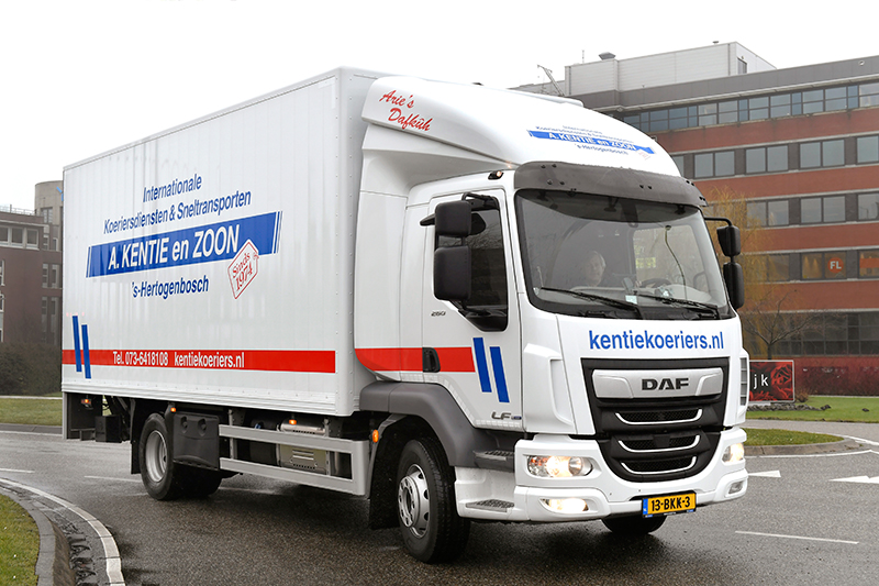 'S-HERTOGENBOSCH - The new DAF LF krijgt de handen op elkaar, afgaande op de ervaringen van de eerste gebruikers. Een daarvan is A. Kentie & Zn. in ’s-Hertogenbosch, specialist in internationale koersdiensten en sneltransporten. De onlangs aangeschafte nieuwe LF 260 FA 16-tonner Pure Excellence overtuigt met zijn wendbaarheid, het overzicht vanuit de cabine, de fijn schakelende geautomatiseerde transmissie en het rijcomfort. De truck is geleverd door Van Hooft bedrijfswagens in ’s-Hertogenbosch.